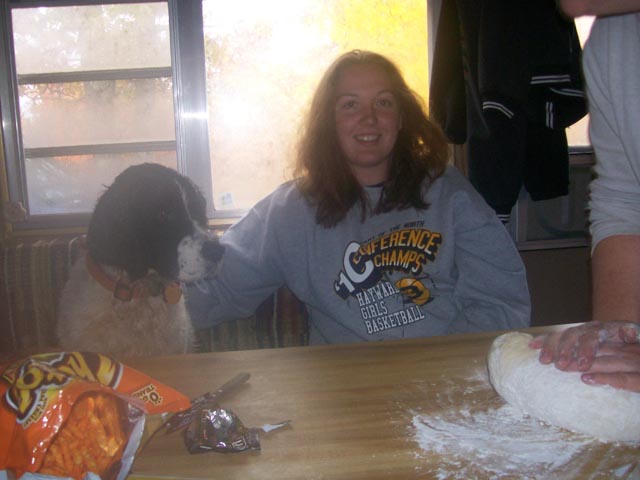 I just wanted to share a couple cute pictures of Sadie with my daughter, Julie. We went horse camping up near Lake Superior this past weekend (the trees were gorgeous!) and it was Sadie's first time camping, running off leash, and mingling with horses. She did great on all counts! She was quiet and well behaved all weekend. All in all, she's doing wonderfully and we love her so much.